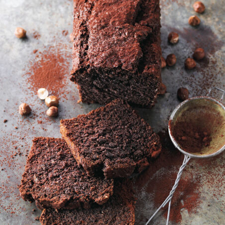 Zucchini waschen, putzen und grob reiben. Butter zerlassen und beiseitestellen. Mehl mit Kakaopulver, Haselnüssen, Zucker, Backpulver, gemahlener Vanille und Salz in einer großen Schüssel vermischen. Zucchiniraspel, zerlassene Butter und Honig hinzufügen und mit den Quirlen des Handrührgeräts zu einem gleichmäßigen Teig verarbeiten.