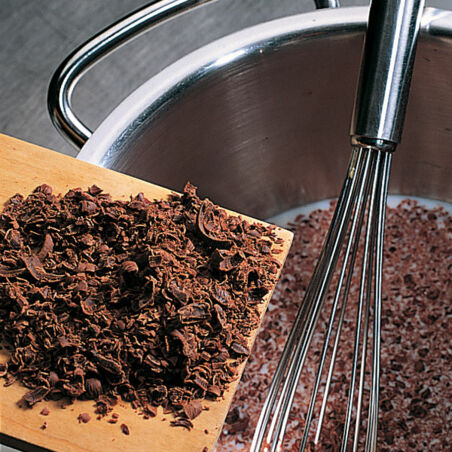 Die Schokolade in kleine Stücke brechen oder grob raspeln. Eigelbe und Zucker in eine Schüssel geben, mit dem Schneebesen oder den Quirlen vom Handrührgerät einige Minuten lang schön cremig aufschlagen.