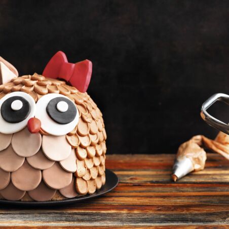 Diese Schokoladentorte mit Buttercreme in Form einer Eule ist so schön, dass es schwer fällt, sie anzuschneiden. Sie ist aber nicht nur ein Hingucker, sondern schmeckt auch ganz wunderbar.