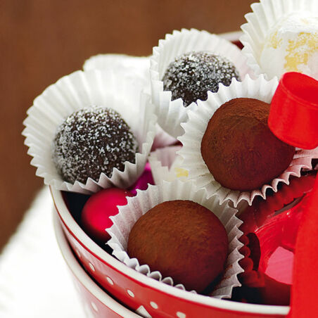Für Naschkatzen! Die Trüffelmasse muss vor dem Formen gekühlt werden, am besten über Nacht. Kühl aufbewahrt, sind die fertigen Trüffel 2 Wochen haltbar.