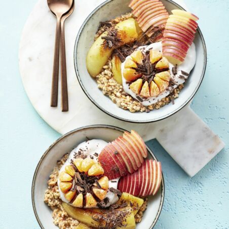 Diese Bowl mit Obst und Schokolade schmeckt süß und fruchtig zugleich.