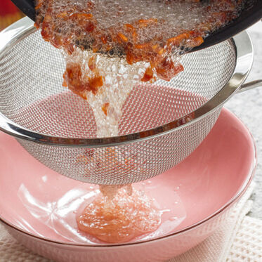 Pfannen vom Herd nehmen, Speck und Speckfett in ein Sieb gießen, dabei das Bratfett auffangen und wieder zurück in die Pfannen geben. Oder den Speck mit einem Schaumlöffel aus der Pfanne heben und auf einen Teller legen.