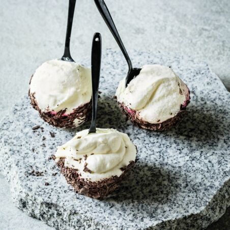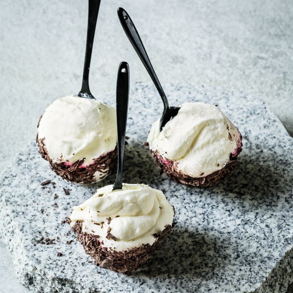 Schwarzwälder Kirsch-Törtchen, aber als Eis am Stiel. Ein raffiniertes Dessert, das deine Gäste bestimmt beeindrucken wird.