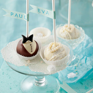 Kirschwasser, Kirschkonfitüre und 2 EL Wasser verrühren und mit den Kuchenbröseln zu einer formbaren Masse vermischen. Daraus 24 Cake-Pops formen und 30 Min. kühlen.