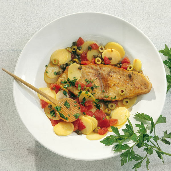 Dieses Gericht aus dem sonnigen Sizilien ist im Handumdrehen zubereitet. Mit Tomaten, Kartoffeln, Oliven und Kapern zubereitet ein wahrer Genuss.