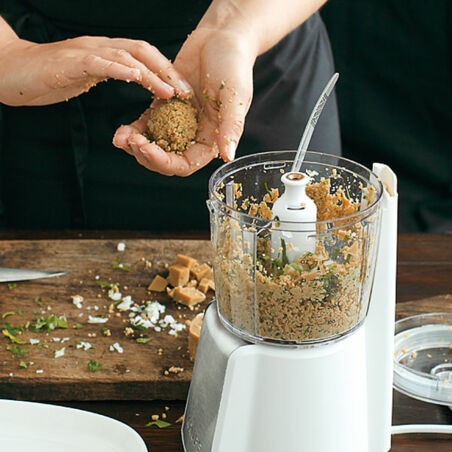 Haltbarkeit: Der fertige Seitan hält sich, luftdicht verpackt, 2-3 Wochen im Kühlschrank und mehrere Monate im Tiefkühlfach. Er kann wie Fleisch verarbeitet werden und nimmt jede Würze dankbar an: Verarbeiten Sie ihn, klein geschnitten und pikant gewürzt, zu "Gyros" oder Geschnetzeltem oder mixen Sie ihn in der Küchenmaschine klein und formen sie Frikadellen daraus.