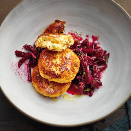 Das Butterschmalz erhitzen und die Pflanzerl in die Pfanne setzen. Bei mittlerer Hitze pro Seite ca. 5 Min. goldbaun braten. Die Pflanzerl servieren, z. B. mit dem Rote-Bete-Salat (siehe unten).