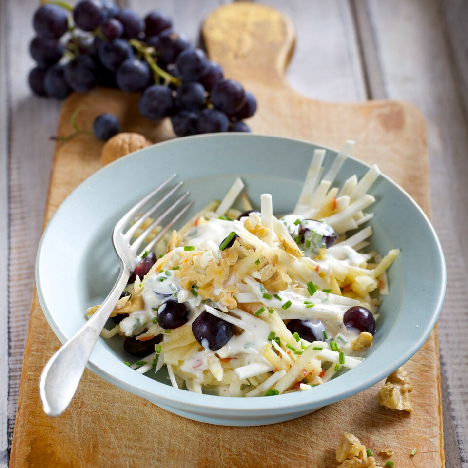 Ein wunderbarer Salat für den Herbst. Knackig aromatischer Sellerie passt wunderbar zu Walnüssen und Weintrauben. Und dazu eine herrliche cremige Sauce.