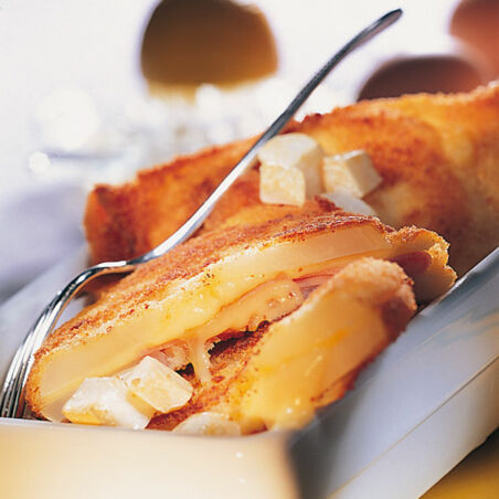 Die Hälfte der Selleriescheiben mit je 1 Scheibe Schinken und Käse belegen (wenn die Scheiben zu groß sind, einfach zusammenklappen). Die übrigen 4 Selleriescheiben draufsetzen. Salzen und pfeffern, leicht mit Mehl bestäuben. Das Ei in einem tiefen Teller verquirlen, die Brösel in einen zweiten Teller streuen. Sellerieschnitzel durchs Ei ziehen, dann in den Bröseln wenden und die Panade leicht andrücken.