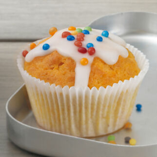 Den Backofen auf 160° vorheizen. Nun je 2 Papiermuffinförmchen ineinanderstellen und auf ein Backblech setzen.