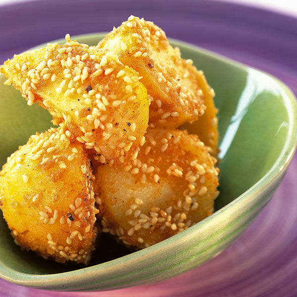 Butter in einer Pfanne erhitzen. Semmelbrösel und Sesam darin ca. 3 Min. anrösten. Kartoffeln dazugeben und in den Butterbröseln schwenken, so dass sie rundherum »paniert« werden. Sofort servieren.
