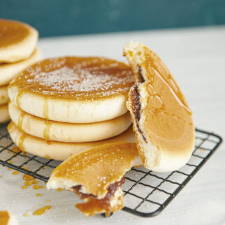 Die Teigrolle aus dem Kühlschrank nehmen und etwa 1cm Scheiben abschneiden. Die buttrigen Teiglagen ermöglichen es jede Scheibe zu einem Hütchen zu drücken. Am besten geht das mit beiden Daumen. Das hintere Ende etwas dicht drücken. Danach kann etwas von der Grießceme eingefüllt werden. Besonders einfach geht das mit einem Spritzbeutel.