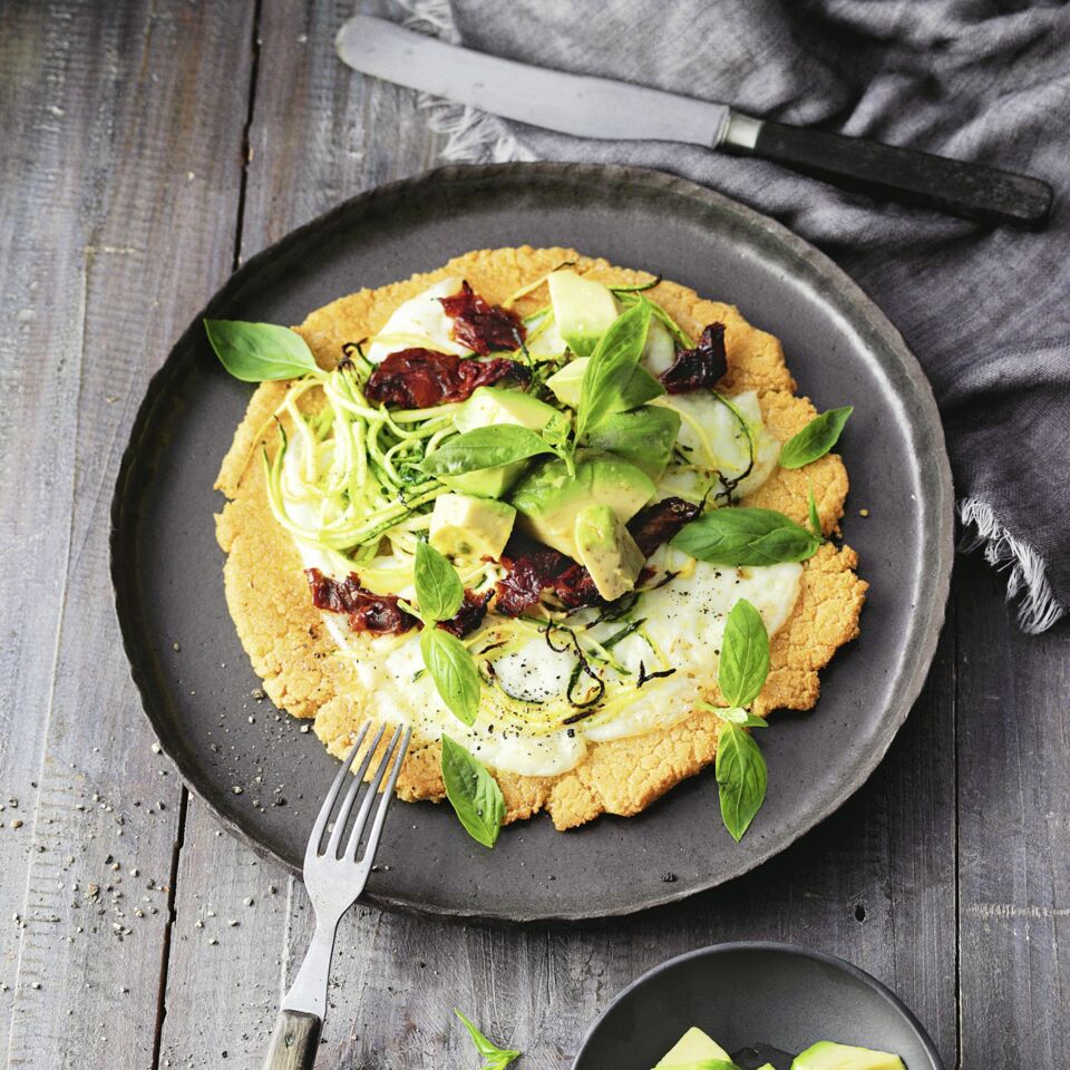 Socca ist eine südfranzösische Fladenbrot-Spezialität aus Kichererbsenmehl, die hier als Pizzaboden dient. Köstlich und glutenfrei.