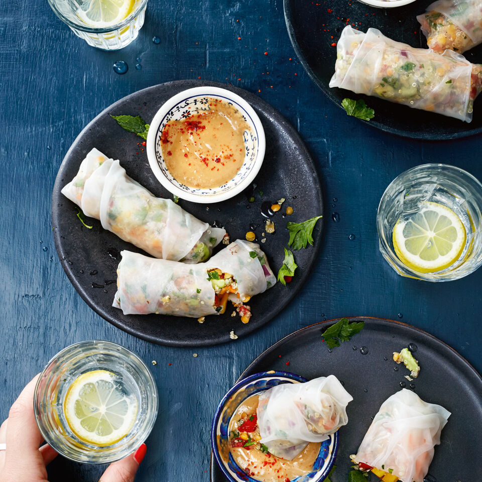 Diese Sommerrollen – auch Summer Spring Rolls genannt – überzeugen mit knackigem Gemüse und vielen Gewürzen. Die Erdnusssauce passt perfekt dazu.