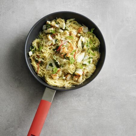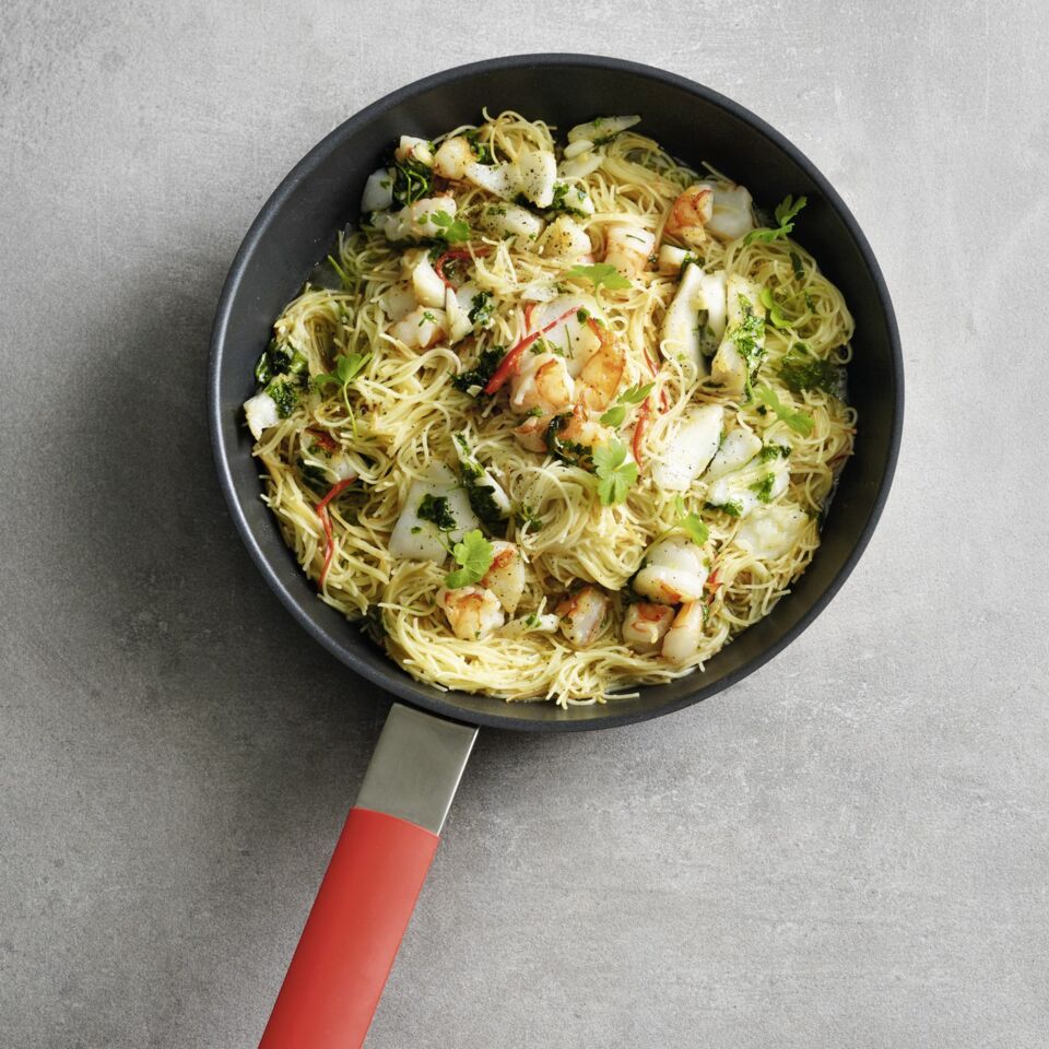 Eine Hommage an Paella, aber diesmal als One Pot Pasta mit Garnelen und Fisch. ¡Que aproveche!