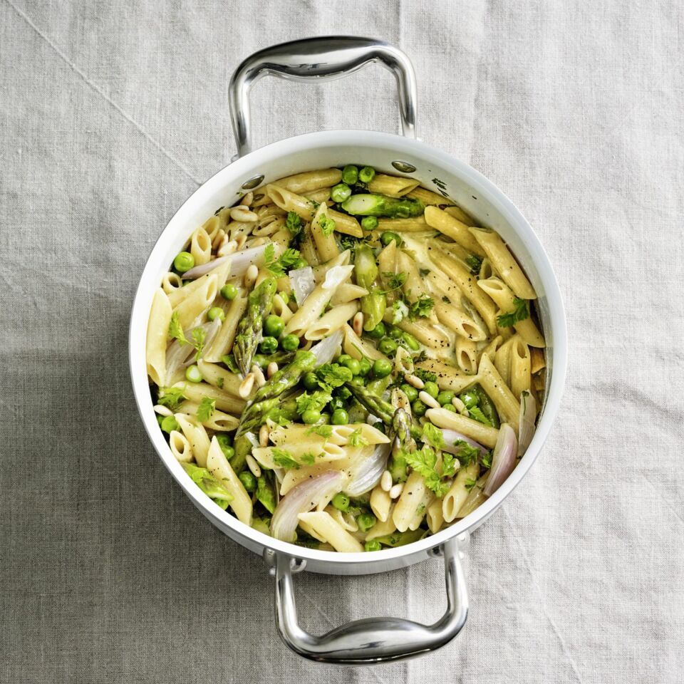 Ein wahrer Frühlingstraum aus Nudeln, grünem Spargel, Erbsen und Kerbel. Gelingt 1-2-3, ganz fix als One-Pot-Rezept!