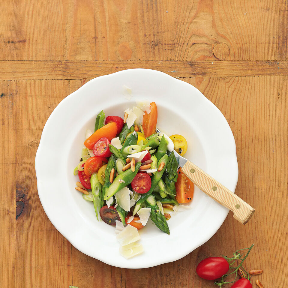 Spargelsalat mit Pecorino und Tomaten