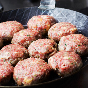 Hackfleisch und feiner Räucherspeck werden zusammen zu herzhaften Buletten verarbeitet.