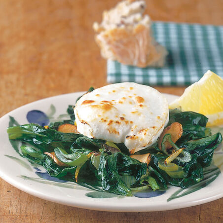 Frischer Spinat macht etwas Arbeit, aber ist unvergleichlich zart. Genießen Sie dazu die cremige Konsistenz des Ziegenkäses.