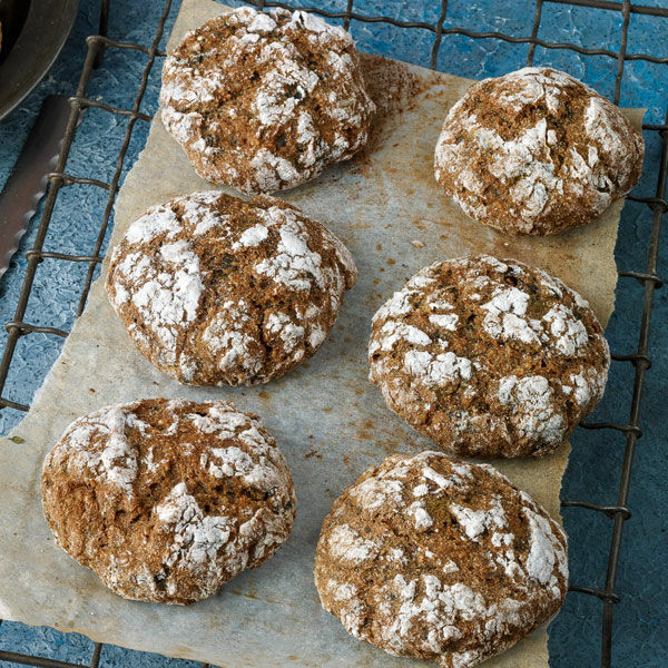 16 Teigkugeln formen und auf zwei gefettete Bleche legen. Zugedeckt ca. 1 Std. ruhen lassen. Backofen auf 220° vorheizen (keine Umluft). Brötchen mit Wasser besprühen und nacheinander (Mitte) 25 Min. backen.