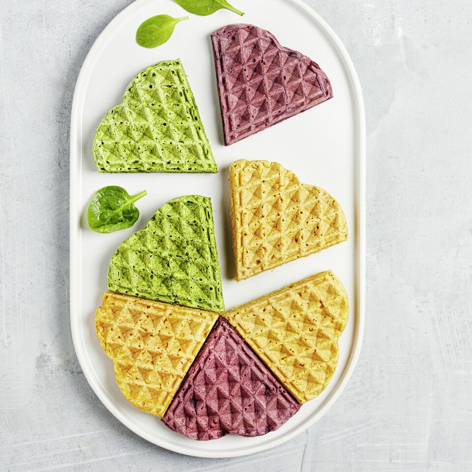 Bunt, zuckerfrei und gesund: Diese leckeren Gemüsewaffeln sind genau das richtige Ablenkungsmanöver für Kinder, die kein Gemüse mögen.