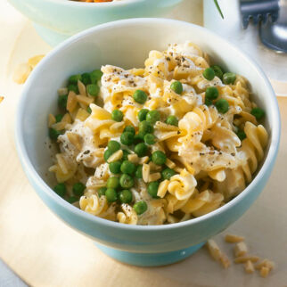 Lust auf Pasta? Unsere Fussili mit Erbsen, Zucchini, Tomaten und Hähnchenbrust wollen gerne ausprobiert werden.