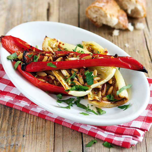 Spitzpaprika aus dem Ofen mit Pinienkernen