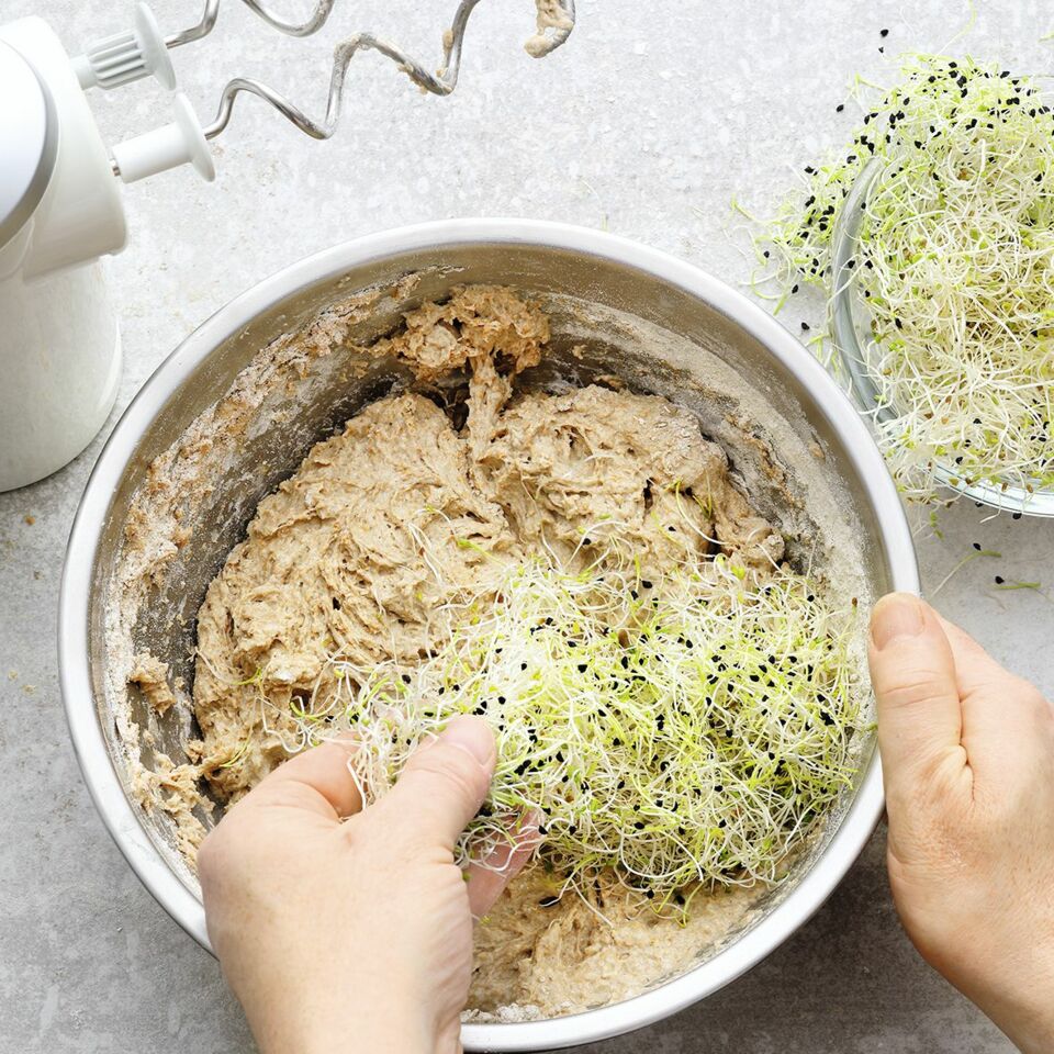 Sprossen bereichern das Brot mit Nährstoffen und machen es außerdem schön saftig. Durch das Keimen sind die Nährstoffe außerdem besser für unseren Körper verfügbar.