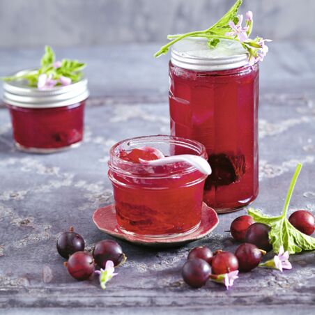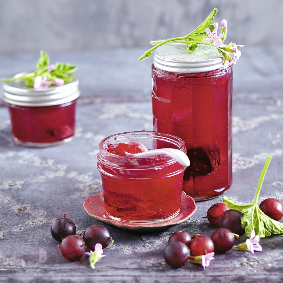 Eine perfekte Kombination: die säuerlich-frischen Stachelbeeren wandern zusammen mit bezauberndem Blütenduft ins Marmeladenglas.
