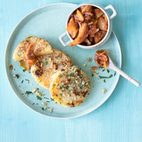 Steckrüben sind ein oftmals vergessenes Gemüse in der Winterküche - warum nicht mal in eine Knusperhülle verpacken und die würzigen Aromen des Chutneys dazu genießen.