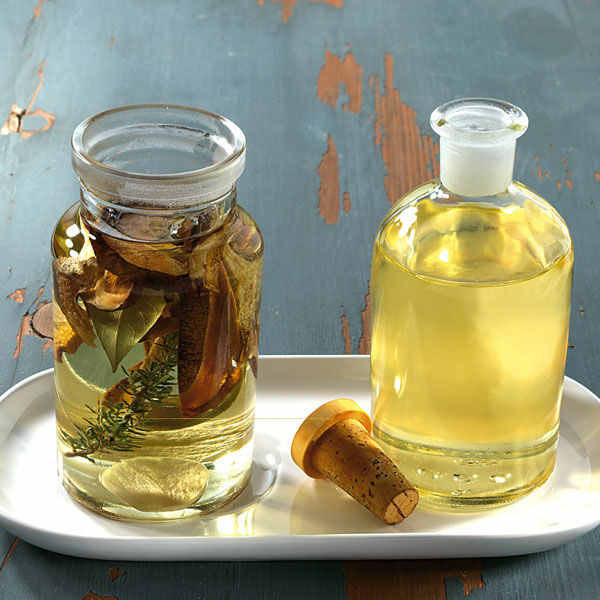 Das Öl durchfiltern und in eine sterilisierte Flasche füllen.