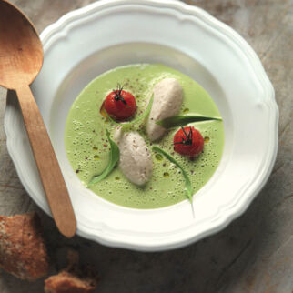 Steirer Almkäsesuppe mit Petersilien-Kresse-Pesto