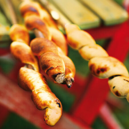 Der Duft von frischem Brot kann keiner widerstehen. Stockbrot wird über dem offenen Lagerfeuer oder dem Holzkohlengrill geröstet bis es knusprig ist.