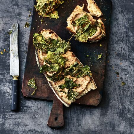 Stullen mit Borlotti-Hummus und Grünkohlchips
