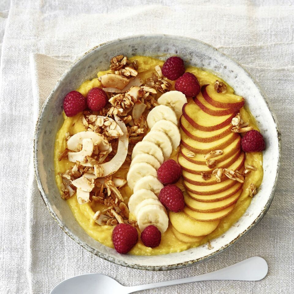 Süße Smoothie-Bowl mit Hafer-Kokos-Crunch
