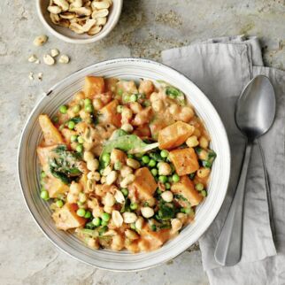 Die gekochten Linsen sowie die stückigen Tomaten hinzufügen und den Eintopf ca. 10 Min. schmoren. Inzwischen die Kirschtomaten waschen und halbieren. Den Spinat in ein Sieb geben und waschen. Mit den Tomaten in den Topf geben, unterrühren und das Ganze weitere ca. 5 Min. schmoren. Mit Salz und Pfeffer abschmecken und servieren.