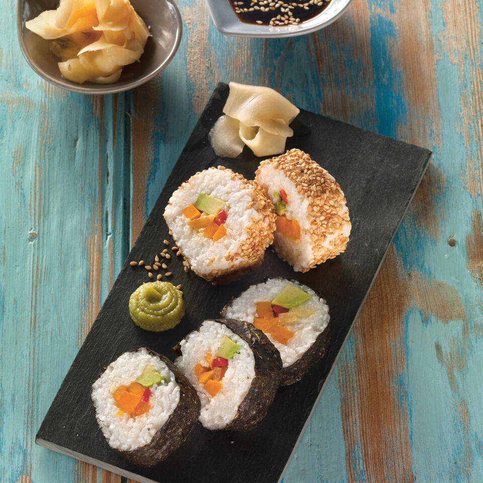 Sushi-Glück für Meeresretter: Hülle und Füllung kommen ganz ohne Fisch aus. Die scharfen Reisrollen lassen es an nichts fehlen!