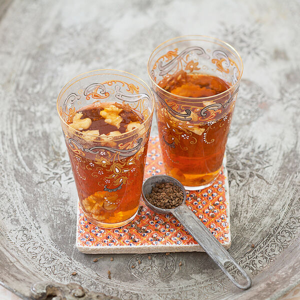 Ein Anistee mit Walnüssen bestreut - in Syrien weiß man, was man mit Tee so alles machen kann
