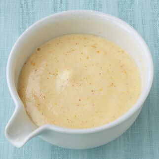 Tahini heißt die türkische Sesampaste, die diesem Dressing den nussigen Geschmack verleiht.