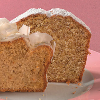 Den Teig in die Form füllen und glatt streichen. Im Backofen (Mitte, Umluft 160°) 45-50 Min. backen. Den Kuchen aus dem Backofen nehmen, 10 Min. abkühlen lassen, dann aus der Form lösen und ganz auskühlen lassen.
