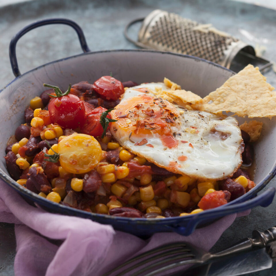 Feuriges Chili trifft auf selbst gemachte Cheese-Nachos. Gekrönt wird der Mexiko-Hit von Spiegeleiern - einfach köstlich.