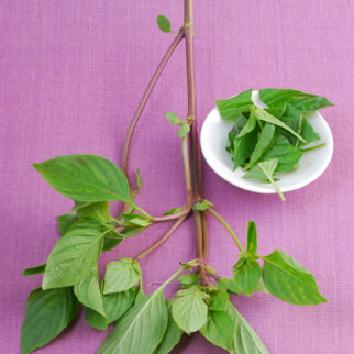 Die Limette waschen, trocken reiben und halbieren. Von einer Hälfte die Schale abreiben und den Saft auspressen, die andere Hälfte in Spalten schneiden. Das Basilikum waschen und trocken schütteln, die Blätter abzupfen und in feine Streifen schneiden.