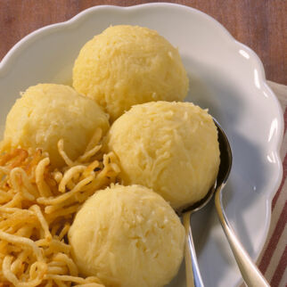Probieren Sie auch das Serviettenknödel Rezept aus dem GU Kochbuch "Servus Bayern". Die Knödel mit appetitlich goldbraunen Zwiebelstückchen zeigen deutsche Küche von ihrer schmackhafsten Seite.