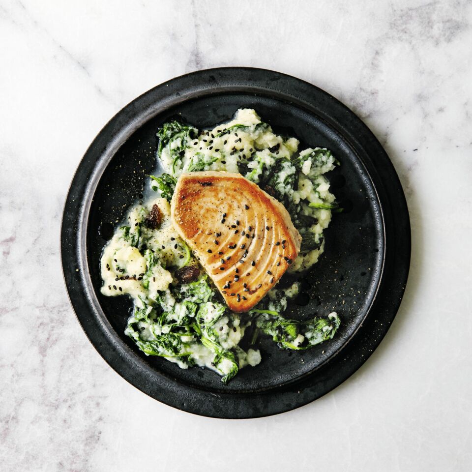 Thunfisch mit Blumenkohl-Spinat-Mash