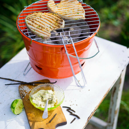 Thunfisch wird auf dem Grill genial. Die Butter dazu wird mit Vanille und aromatischem Pfeffer gewürzt. Eine Hammer-Kombination!