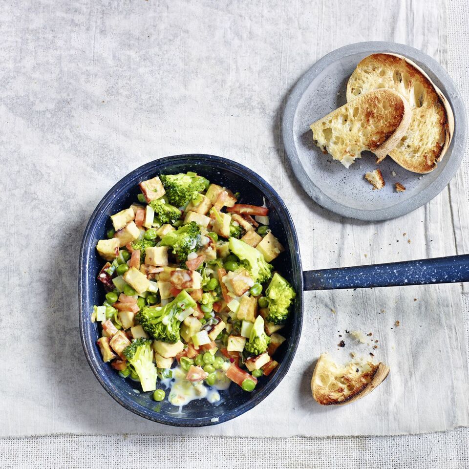 Für diesen veganen Gaumenschmaus kommt alles in eine Pfanne. Das spart hinterher viel Zeit und Mühe beim Abspülen.