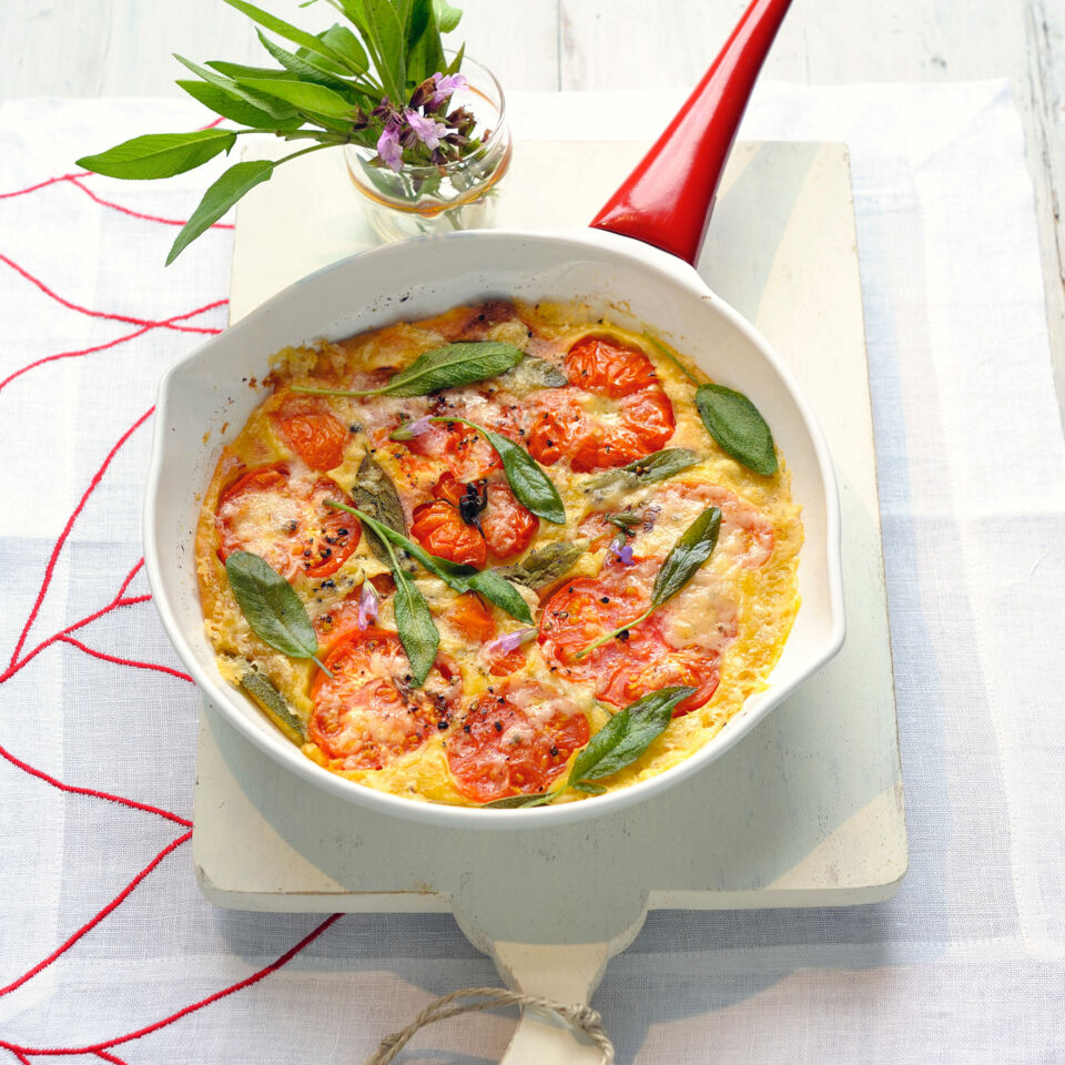 Halb Pfannkuchen, halb Quiche – in jedem Fall ein schnelles Gemüsegericht aus Maismehl, aromatischen Tomaten und kräftigem Salbei.