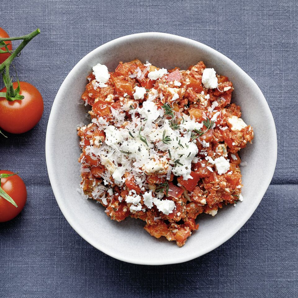 Feta und Parmesan sorgen für viel Kalzium. Tomatenmark enthält eine große Menge Lycopin, ein Carotinoid, das antioxidativ wirkt und so die Zellen schützt. Und Paprika steckt voller Vitamin C.