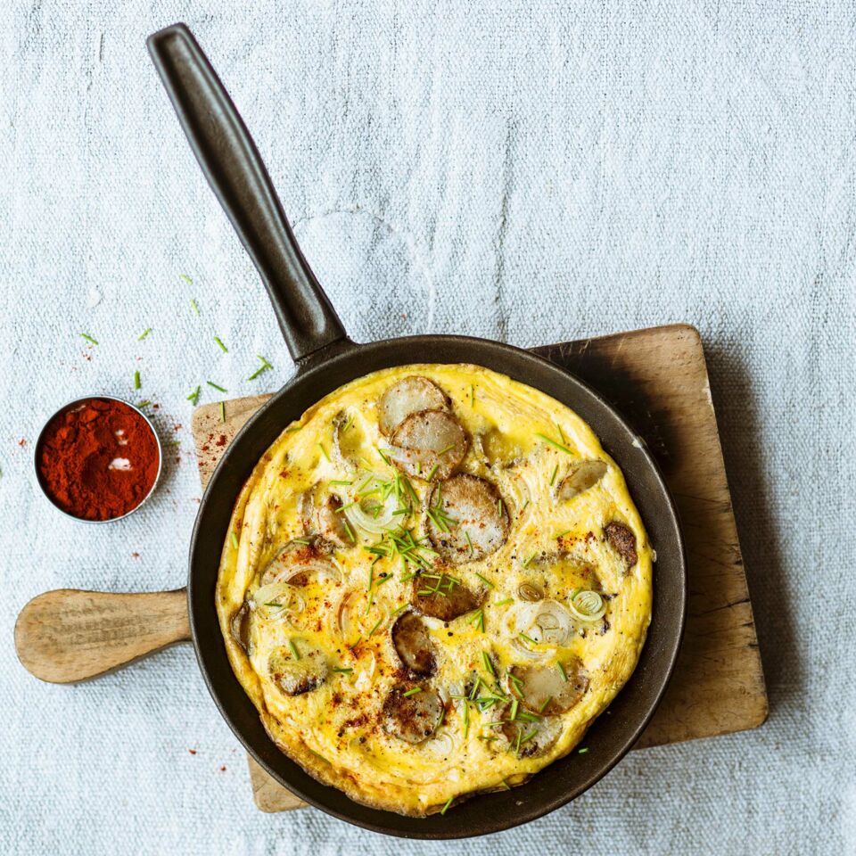 Heute gibt es Bauernfrühstück im neuen Gewand. Die Hauptdarsteller: Topinambur, Zwiebeln und Eier. Guten Appetit!