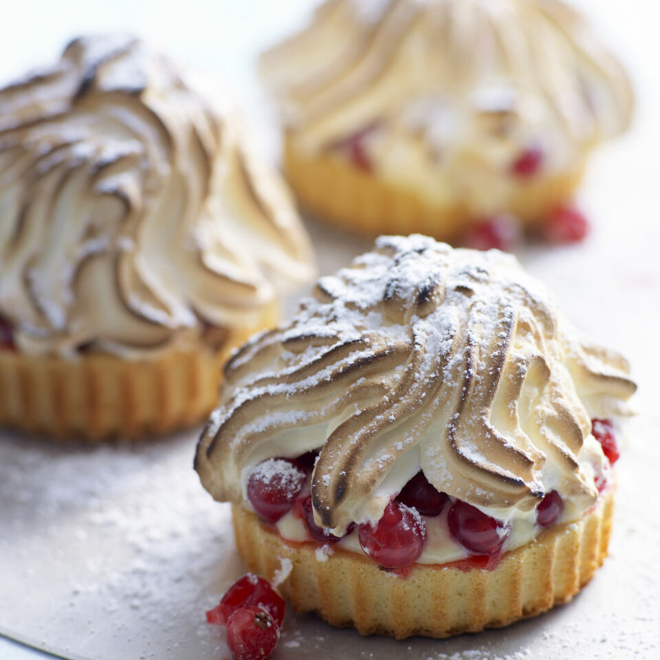 Jeweils 1 Eiskugel in die Mitte eines Torteletts setzen und vollständig mit der Eiweißmasse umhüllen; dabei zügig arbeiten. Die Torteletts im Ofen (Mitte) in 1-2 Min. goldbraun übergrillen. Herausnehmen, mit Puderzucker bestäuben und sofort servieren.